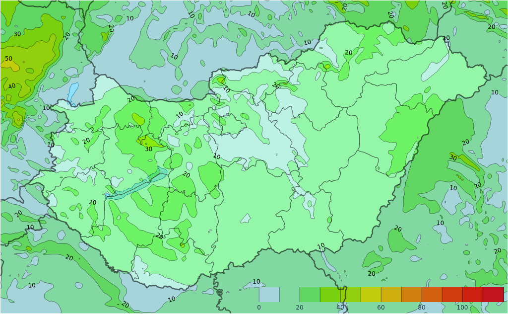 Északnyugat felől szakadozik, csökken, majd estétől megnövekszik, képződik a felhőzet. Nagyobb területen több, keleten néhány órás napsütés valószínű. Hazánk északkeleti felén délelőtt több helyen valószínű eső, zápor. Eleinte csökken, a nap második felétől újra növekszik a csapadékhajlam: északnyugat felől elszórtan valószínű zápor, akár zivatar is kialakulhat - legkisebb eséllyel délnyugaton. Az északnyugati szél északon többfelé megerősödik, záporok, zivatarok környezetében viharos széllökés sem kizárt.A maximum általában 11 és 16 fok között alakul, de északkeleten csupán 7, 10 fok valószínű.