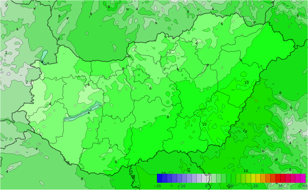 Többnyire erősen felhős idő valószínű, de főként a nyugati, délnyugati tájakon határozottabban is csökkenhet a felhőzet. Az északkeleti harmadban és a délnyugati határ közelében elszórtan lehet kisebb eső, amelyet északkeleten estétől havas eső, a hegyekben havazás is válthat. Az északnyugati, északi szelet élénk, néhol erős lökések kísérik. A legalacsonyabb éjszakai hőmérséklet -1 és +4 fok között alakul. A csúcshőmérséklet általában 6, 11 fok között valószínű, de Borsodban pár fokkal hidegebb is lehet.
