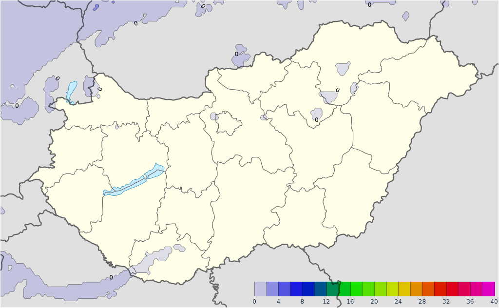 - Szórványosan valószínű csapadék (vegyes lehet a halmazállapot).
