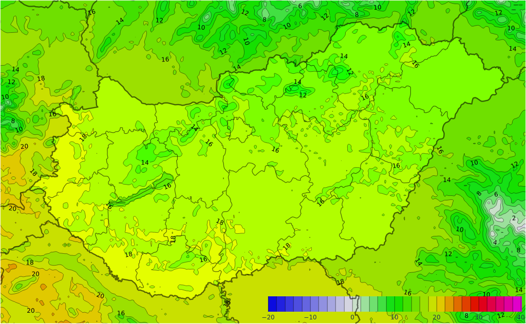 - A legalacsonyabb éjszakai hőmérséklet 8 és 14, a legmagasabb nappali hőmérséklet 15 és 21 fok között valószínű.
