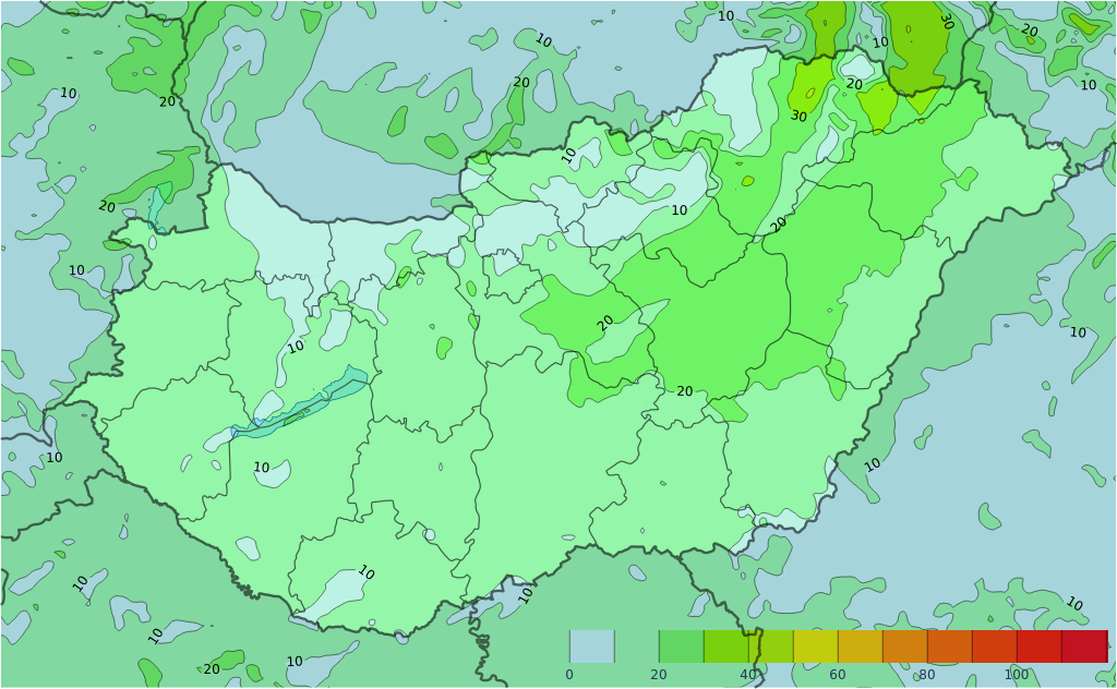• Szórványosan kialakulhat záporeső, zivatar, egyre inkább keleten.