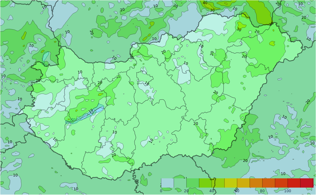Szerdán hidegfront vonul át, így nyugat felől átmenetileg erősebben megnövekszik a felhőzet, de emellett hosszabb-rövidebb napos időszakokra is számíthatunk. A reggeli, délelőtti órákban a Dunántúlon várhatóan csak kevesebb helyen, majd délutántól a Dunától keletre több helyen is kialakulhatnak záporok, zivatarok, amelyek a keleti határvidéken késő estére szűnhetnek meg. Az északnyugati, északi szél elsősorban a Dunántúlon nagy területen megerősödik. A legmagasabb nappali hőmérséklet jellemzően 27 és 34 fok között valószínű, de a Tiszántúl egyes részein egy-két fokkal melegebb is lehet. Késő este 23, 29 fok várható.