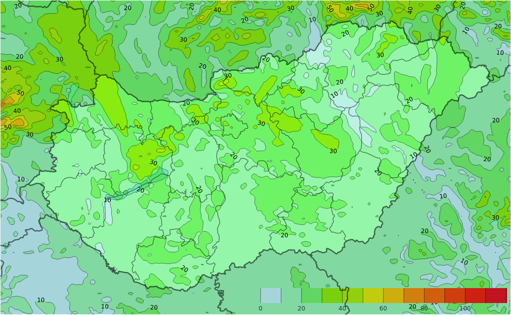 - Elvétve fordulhat elő zápor, zivatar, erre nagyobb esély a délkeleti megyékben van.