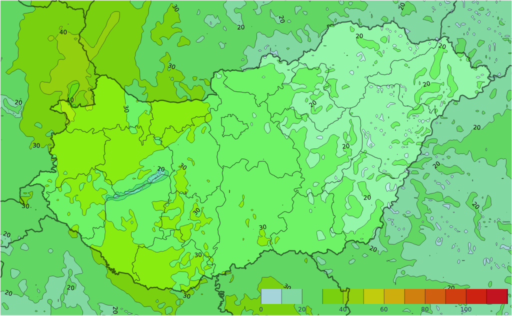 Szerdán napos időre számíthatunk kevés fátyol- és gomolyfelhővel, csapadék nem valószínű. A keleties szél főként az északkeleti, keleti tájakon időnként megélénkülhet. A legmagasabb nappali hőmérséklet 31 és 36 fok között várható.