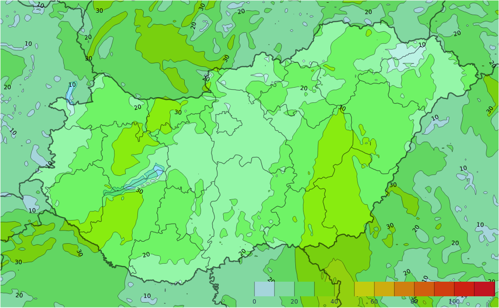 Vasárnap a látási viszonyok nagyrészt javulnak, de a Nyugat-Dunántúlon és északkeleten maradhatnak tartósabban párás, ködös területek. Mindeközben délnyugat felől ismét megvastagszik a felhőzet, és egyre többfelé várható eső, záporeső, a reggeli órákban az Alpokalján esetleg ónos eső sem kizárt. Többfelé megélénkül, az Észak-Dunántúlon a délkeleti, keleti, a Dél-Alföldön a déli szél erősödik meg, utóbbi tájakon viharos lökések is előfordulhatnak. A legmagasabb nappali hőmérséklet általában 2 és 9 fok között alakul, de helyenként a nyugati határszélen alacsonyabb, míg a szelesebb délkeleten magasabb értéket is mérhetünk. Késő este 0, 5 fok valószínű.