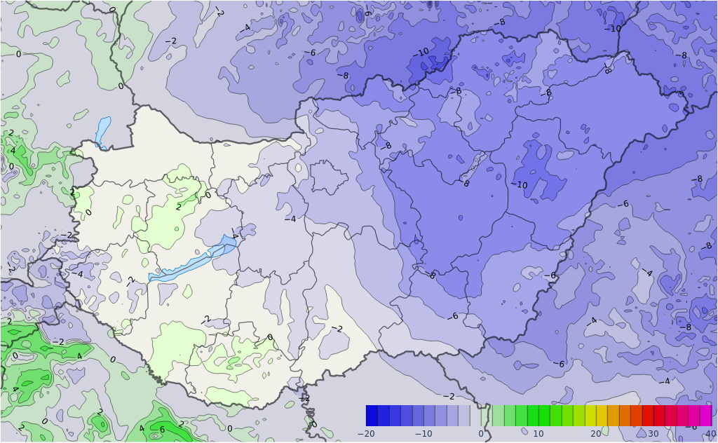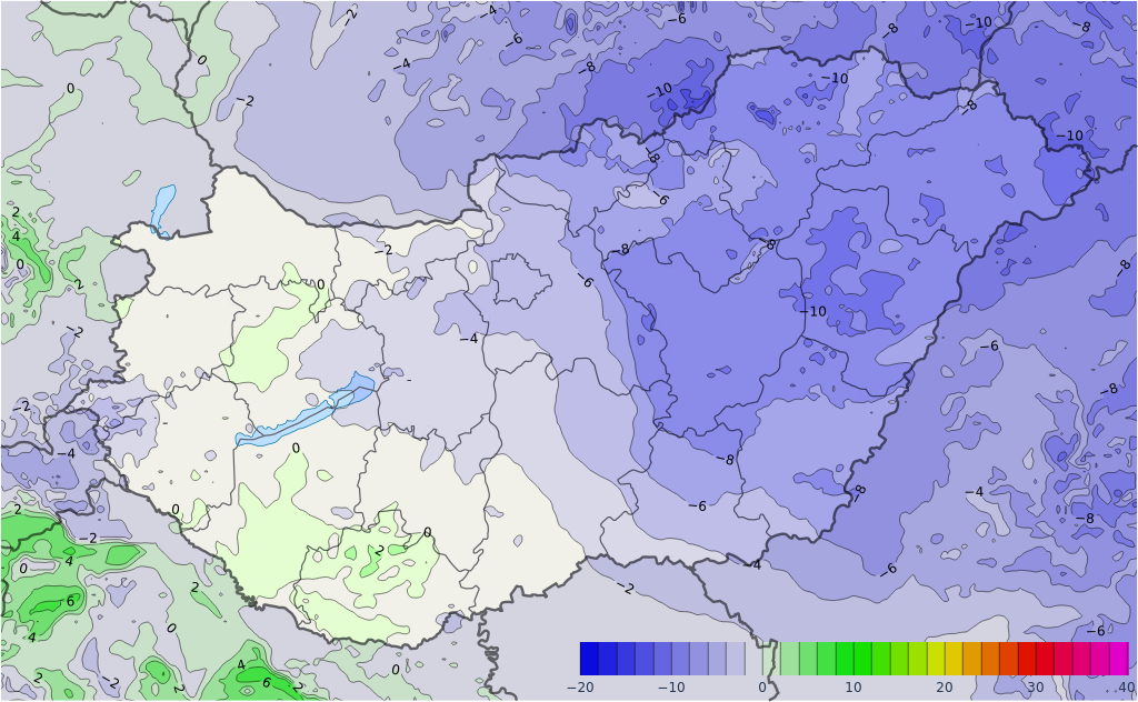 Szerdán az ország döntő részén borult, párás, helyenként tartósan ködös idő várható (zúzmarával), délnyugaton ugyanakkor kevesebb lehet a felhő, ott derült körzetek is előfordulhatnak. A ködös, rétegfelhős tájakon szitálás, ónos szitálás, hószállingózás előfordulhat. Kiemelten este északkeleten kisebb havazás, ónos eső is kialakulhat. Többnyire gyenge vagy mérsékelt marad a légmozgás, de délnyugaton a délies szél olykor megélénkülhet. A legmagasabb nappali hőmérséklet általában -5 és +2 fok között alakul, de a szelesebb, naposabb délnyugati országrészben és esetleg a Bakonyban jóval enyhébb időre számíthatunk, a délnyugati határvidéken 10 fok fölötti csúcsértékek is előfordulhatnak. Késő este -6, +4 fok valószínű.