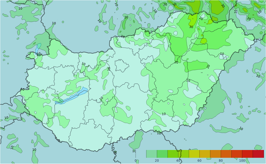 több helyen lehet kisebb eső, havas eső, havazás, legkisebb eséllyel az északkeleti, illetve a nyugati megyékben.
