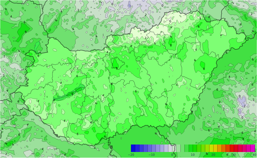 Csütörtökön éjszaka délnyugat felől beborul az ég, de napközben a déli, délkeleti országrészben átmenetileg szakadozottá válhat a felhőtakaró. Folyamatosan növekszik a csapadékhajlam: este már sokfelé eshet, többnyire eső, zápor valószínű. Havazás, illetve vegyes csapadék az Északi-középhegység térségében, este már északnyugaton is lehet. A délies és keleties szél többfelé megélénkül, helyenként meg is erősödhet, majd estétől északnyugaton északnyugatira fordul az áramlás. A minimum általában -5 és +1 fok között alakul, de a fagyzugokban hidegebb is lehet. Délután jobbára 5, 10 fok várható, délen, délkeleten ennél enyhébb, az északkeleti harmadban és az Alpokalján hidegebb lesz.