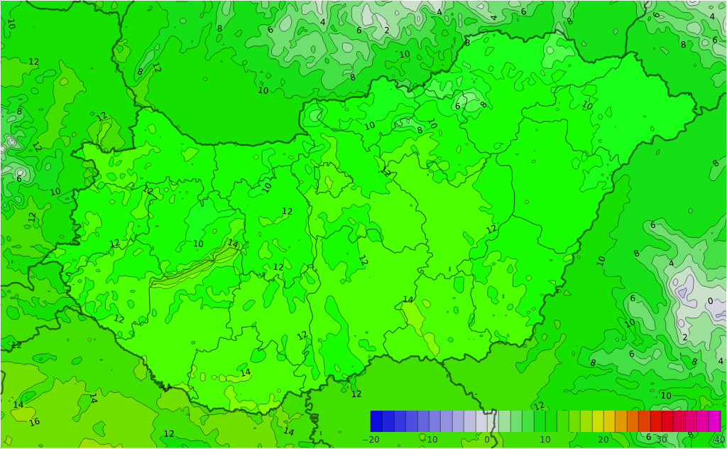 - A legalacsonyabb éjszakai hőmérséklet 3 és 9, a legmagasabb nappali hőmérséklet 5 és 12 fok között valószínű.