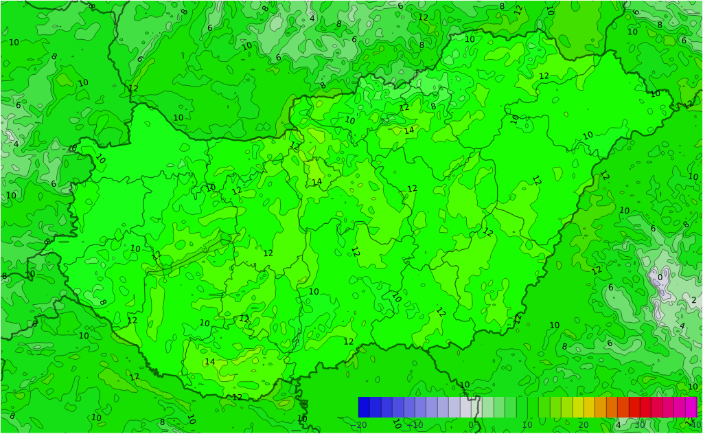 A légmozgás gyenge, mérsékelt marad. A csúcshőmérséklet 12 és 17 fok között alakul.