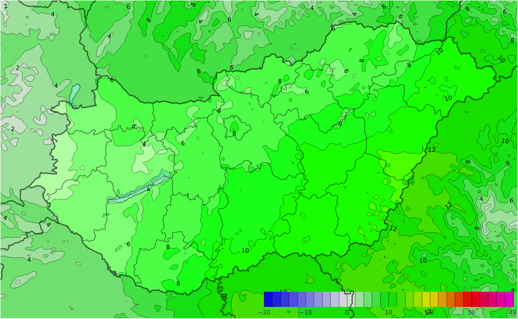 Kedd hajnalra helyenként párássá válhat a levegő, köd is képződhet. Napközben száraz, napos, gyengén felhős idő várható. A légmozgás gyenge, mérsékelt marad. A minimum-hőmérséklet -7, 0, a csúcsérték általában 10 és 14 fok között alakulhat.