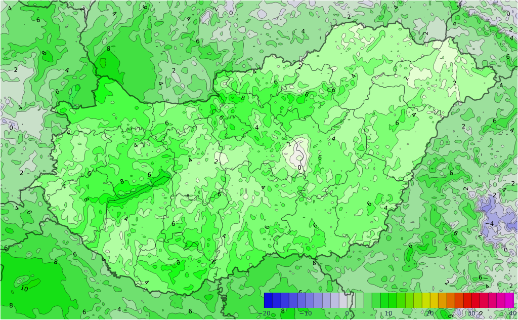 Csütörtökön többnyire borult időre van kilátás több helyen csapadékkal; zömmel esővel, vegyes halmazállapotú csapadék csak kevés helyen eshet. A délies szél megélénkül, helyenként átmenetileg meg is erősödik. A minimum -1, +6, a maximum általában 2 és 9 fok között alakul, de délkeleten kissé melegebb lehet az idő.