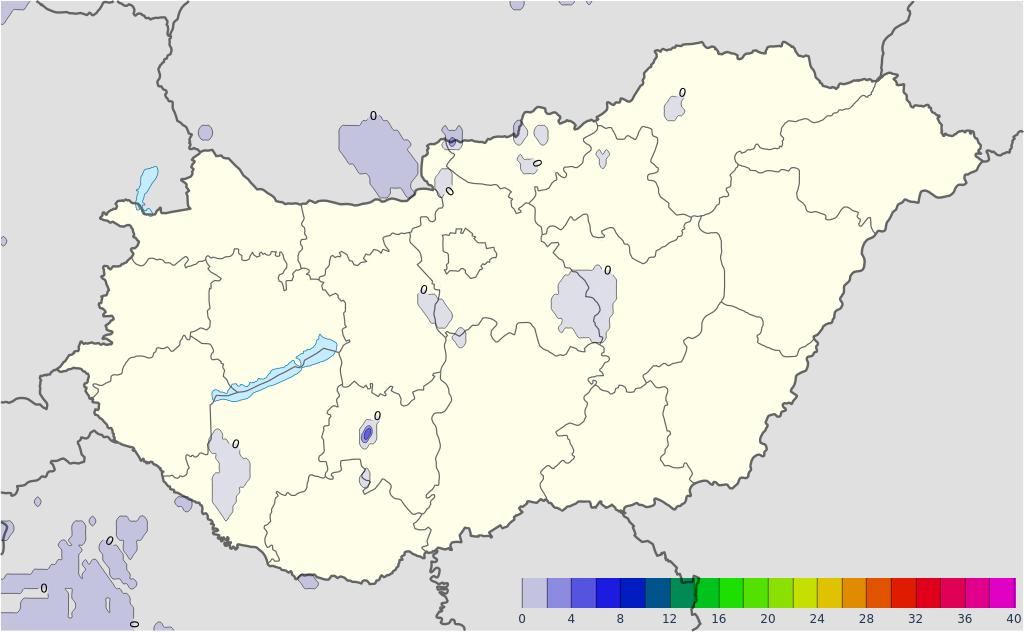 Hétfőn keleten többnyire erősen felhős vagy borult, helyenként párás idő várható, de a Dunántúlon napközben kisebb-nagyobb vékonyodás, szakadozás előfordulhat a felhőzetben. Elszórtan, nagyobb eséllyel a nyugati megyékben és északkeleten, keleten várható csapadék, jellemzően eső, de nyugaton időszakosan ónos eső is eshet, főként a hajnali, reggeli órákban. A déli, délkeleti szél hajnalra mérséklődik, ezt követően csak a délkeleti határnál élénkülhet meg. A minimum-hőmérséklet -2, +6, a maximum általában 4 és 10 fok között valószínű, de északnyugaton, északon kevés helyen kissé hidegebb, míg a déli határnál melegebb is lehet.