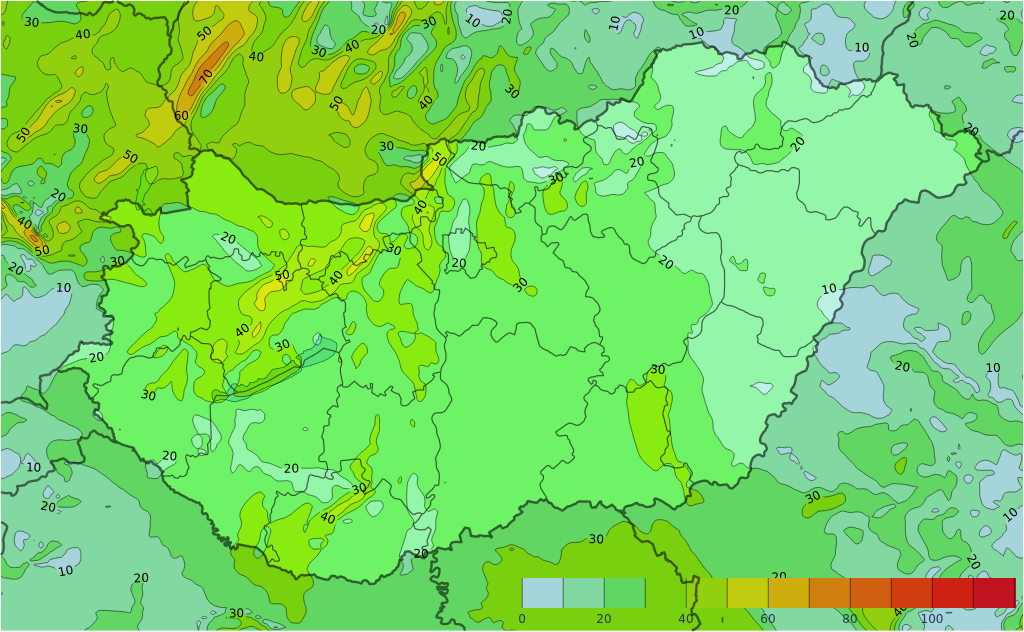 • Szórványosan lehet zápor, néhol zivatar is kialakulhat.