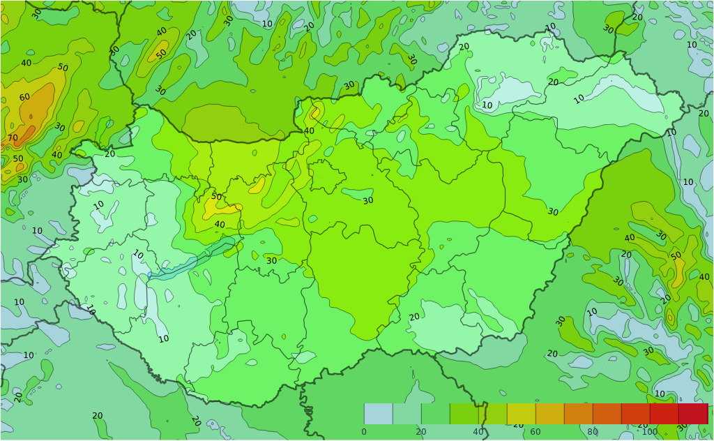 - Északkeleten mérhetik az alacsonyabb, délen a magasabb értékeket.