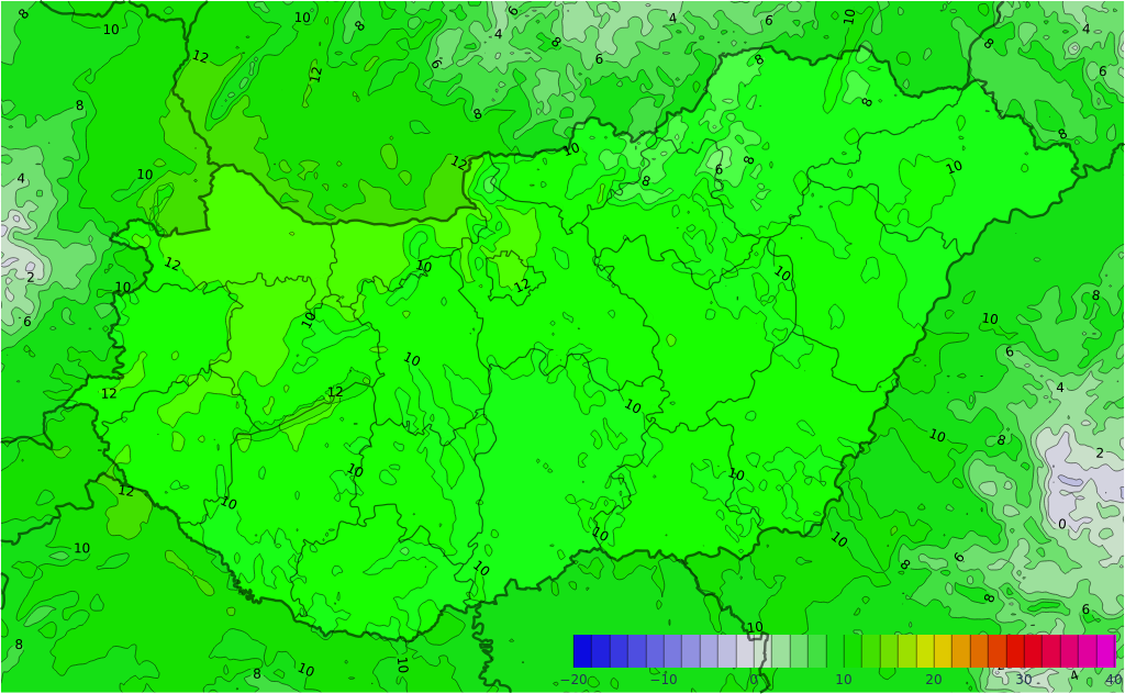 - A hőmérséklet csúcsértéke 6 és 11 fok között alakul.