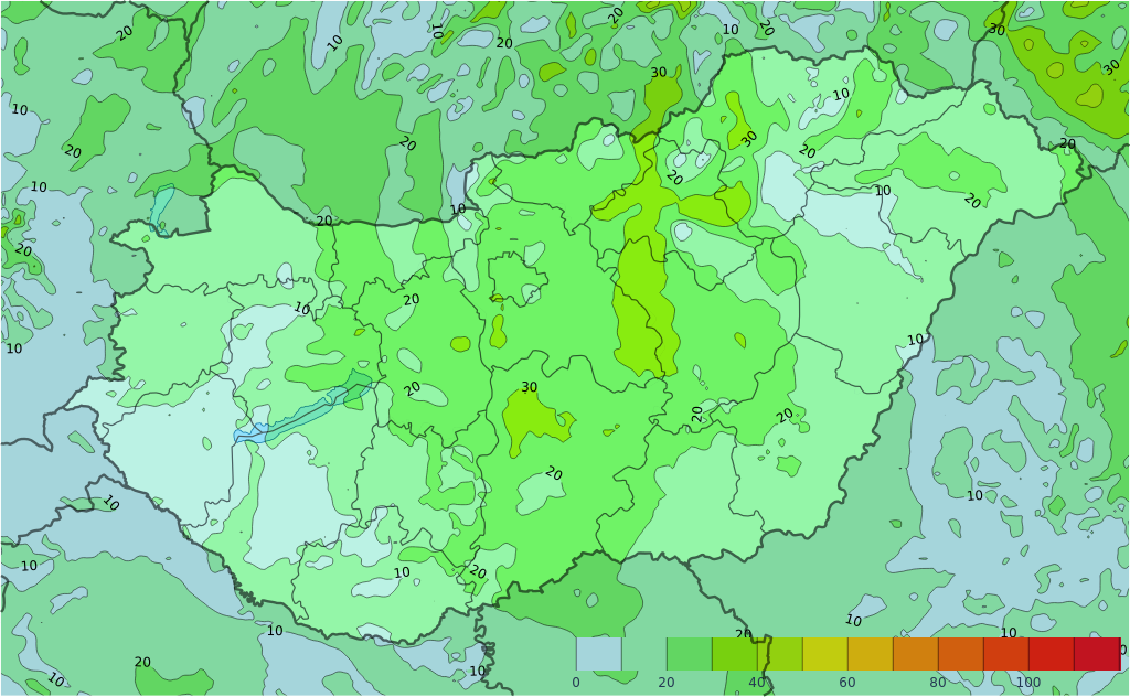 Szerdán nyugat, délnyugat felől megnövekvő felhőzetre számíthatunk északkeleten, keleten több, másutt kevesebb napsütéssel. A nap első felében az ország délnyugati felén helyenként fordulhat elő zápor, zivatar, majd átmeneti szünetet követően délután délnyugat felől kiterjedtebb csapadékzóna érkezik. A nap folyamán a délkeleti, keleti országrészben a legkisebb a csapadék esélye. A délkeleti, déli szél megélénkül, néhol megerősödik. Hajnalban többnyire 14, 19 fok várható, de a kevésbé felhős északkeleti tájakon pár fokkal hűvösebb is lehet. Délutánra általában 24, 30 fok közé melegszik fel a levegő, de a Dél-Alföldön pár fokkal magasabb, míg a csapadékosabb nyugati tájakon pár fokkal alacsonyabb lehet a maximum.