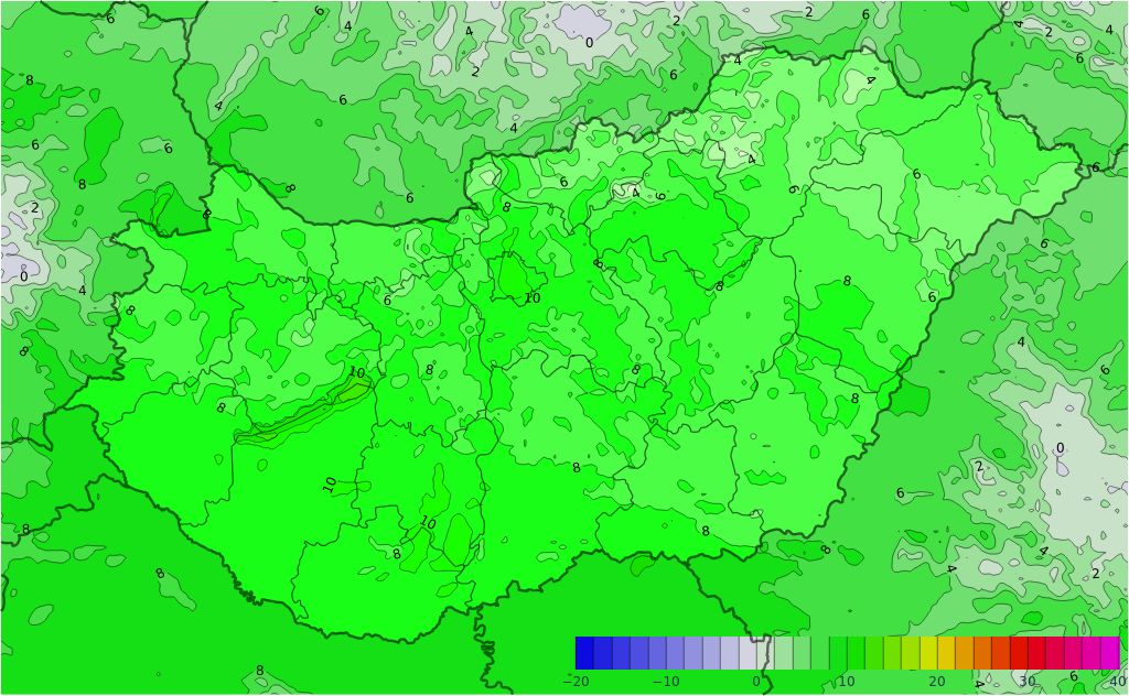 Csütörtökön észak felől fölénk sodródó felhők mellett sok lesz a napsütés, csapadék nem várható. Az északnyugati, északi szél többfelé megerősödik. A hőmérséklet hajnalban általában -1 és +5 fok között alakul, de a hidegre hajlamos helyeken ennél pár fokkal hidegebb lehet, összességében több helyen van esély fagyra. Délután 16, 21 fok valószínű.