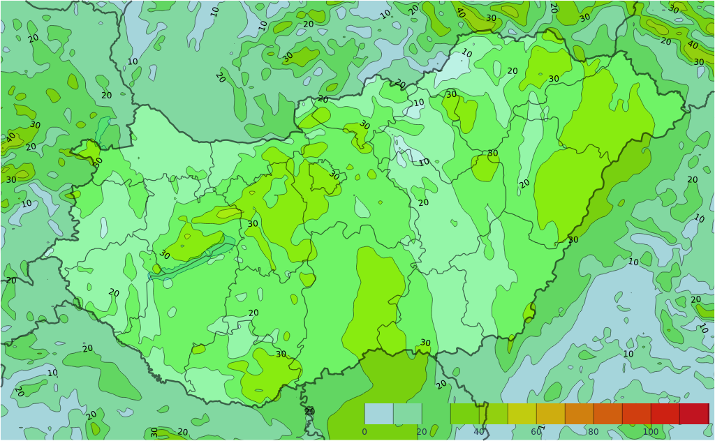 - Szórványosan – nagyobb eséllyel északkeleten – fordulhat elő eső, zápor, zivatar.