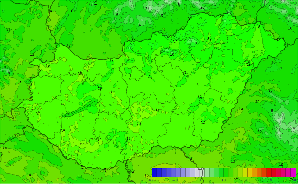 Szerdán a délnyugat, dél felől fölénk nyúló vastagabb felhőzet csak lassan vonul le rólunk, a határhoz közel lévő részeken gyenge eső is előfordulhat. Máshol gomolyfelhő-képződésre számíthatunk a több-kevesebb napsütés mellett, néhol nem zárható ki záporeső. Az északi, északkeleti szél több helyen megerősödik. A minimum általában 5 és 11 fok között alakul, de a szélcsendes északi völgyekben ennél hidegebb is lehet. A maximum 12 és 18 fok között várható.