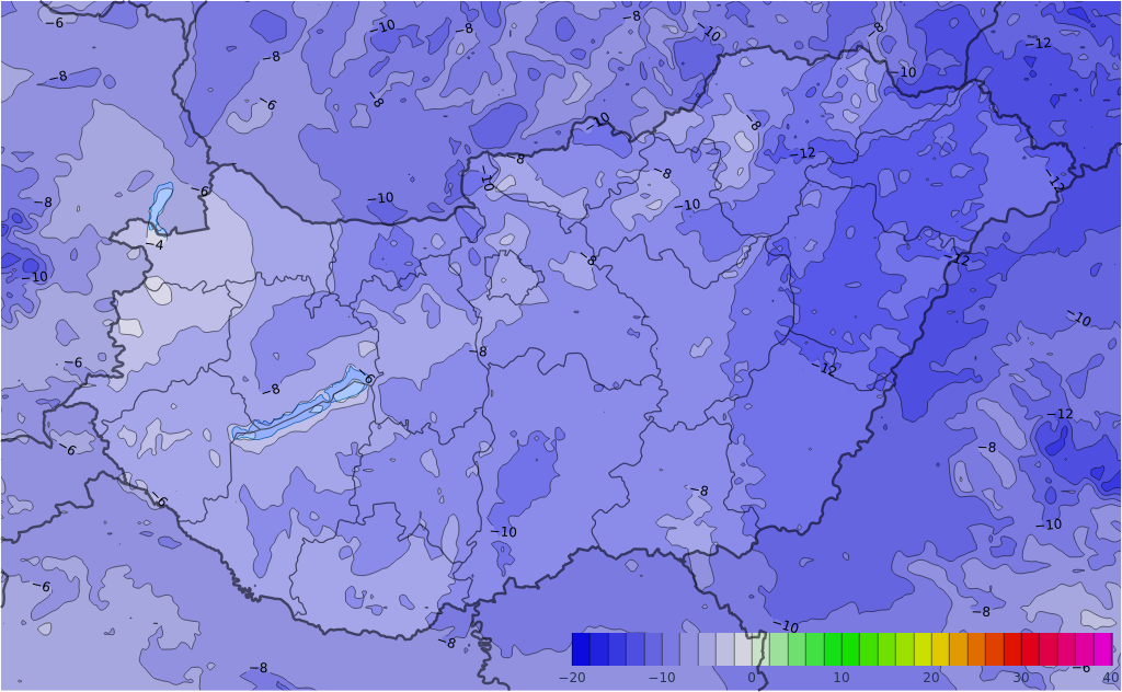 A következő napokban is marad a fagyos idő. Hajnalonként több helyen -15 fok alá süllyedhet a hőmérséklet, de napközben is az ország nagyobb területén lesz fagypont alatt a maximum.