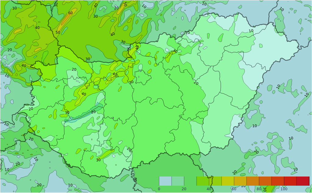 - Az északnyugati, északi szél sokfelé megerősödik, elsősorban a Győr-Békéscsaba vonal szélesebb sávjában viharos lökések is lehetnek.