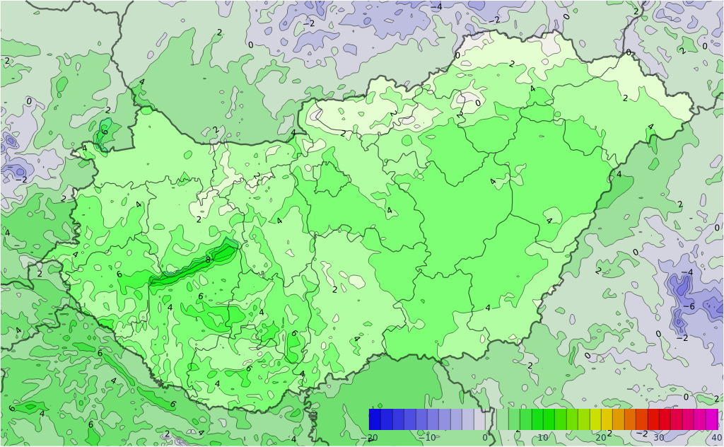 Kedden vékonyodik, szakadozik a felhőzet, az ország nagy részén hosszabb-rövidebb időre kisüt a nap, de nyugaton, délnyugaton lehetnek tartósan felhős, borult részek. Csapadék napközben nem valószínű, legfeljebb szitálás lehet a Dunántúlon. Estétől nyugat felől másutt is megnövekszik, megvastagszik a felhőzet, ekkortól néhol eső is előfordulhat. A déli, délkeleti szelet az Észak-Dunántúlon élénk, Sopron környékén időnként erős lökések kísérik. A legmagasabb nappali hőmérséklet általában 8 és 14 fok között várható, de északkeleten kicsit hidegebb lehet.