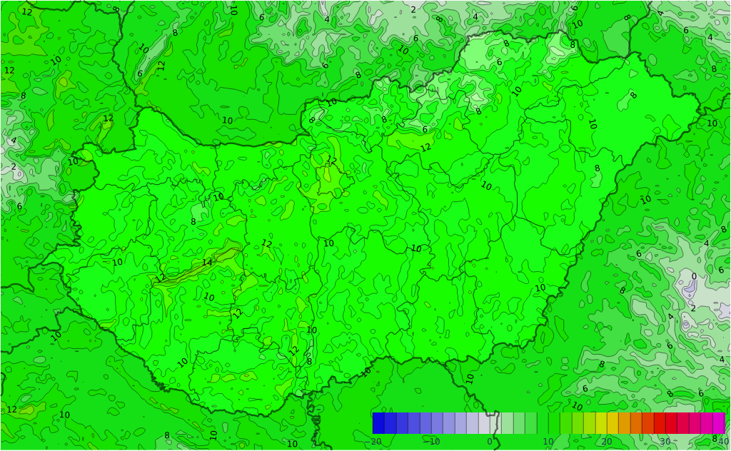 A front előtt déliesre, mögötte északnyugatira fordul a szél, melyet csapadékgócok környezetében erős széllökések is kísérhetnek. A legmagasabb nappali hőmérséklet jobbára 20 és 24 fok között alakul.