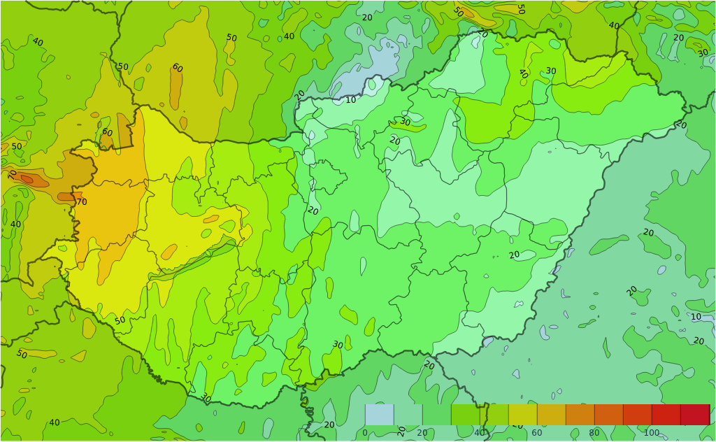 - Elsősorban nyugaton és északon fordul elő szórványosan zápor, zivatar.