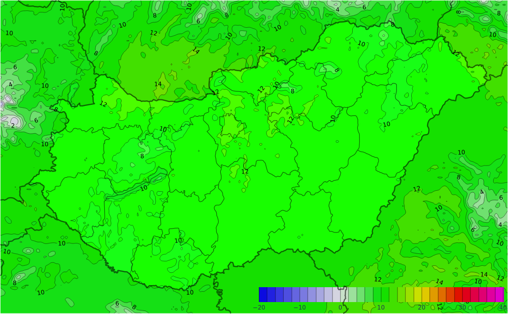 - A minimum-hőmérséklet -3 és +6, a maximum 5 és 13 fok között valószínű.