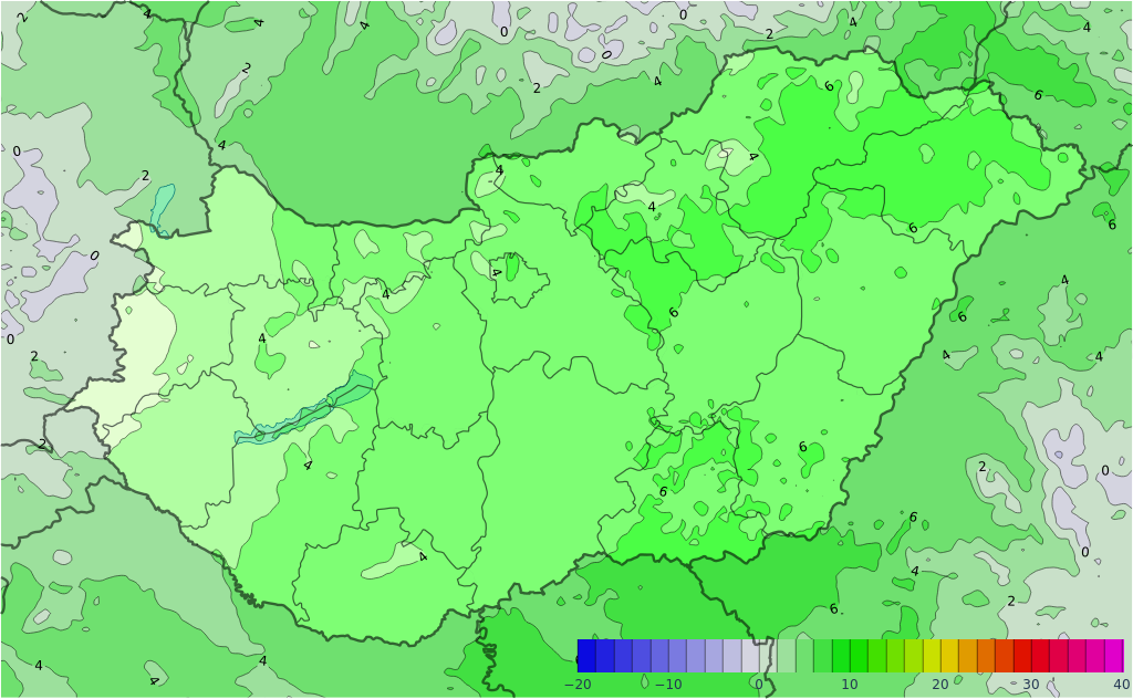 Csütörtökön az ország nagy részén derült vagy felhőtlen, száraz idő várható, kevés fátyol- és gomolyfelhő legfeljebb északnyugaton, nyugaton jelenhet meg néhol. A déliesre forduló szelet a Kisalföldön élénk lökések kísérhetik, másutt jobbára gyenge vagy mérsékelt lesz a légmozgás. Hajnalra döntően 14, 19 fok közé hűl le a levegő, de a hidegre érzékeny helyeken ennél több fokkal hűvösebb, míg a belvárosokban, vízpartok mentén enyhébb lehet az éjszaka. Délután 33, 38 fok közötti értékekre számíthatunk.