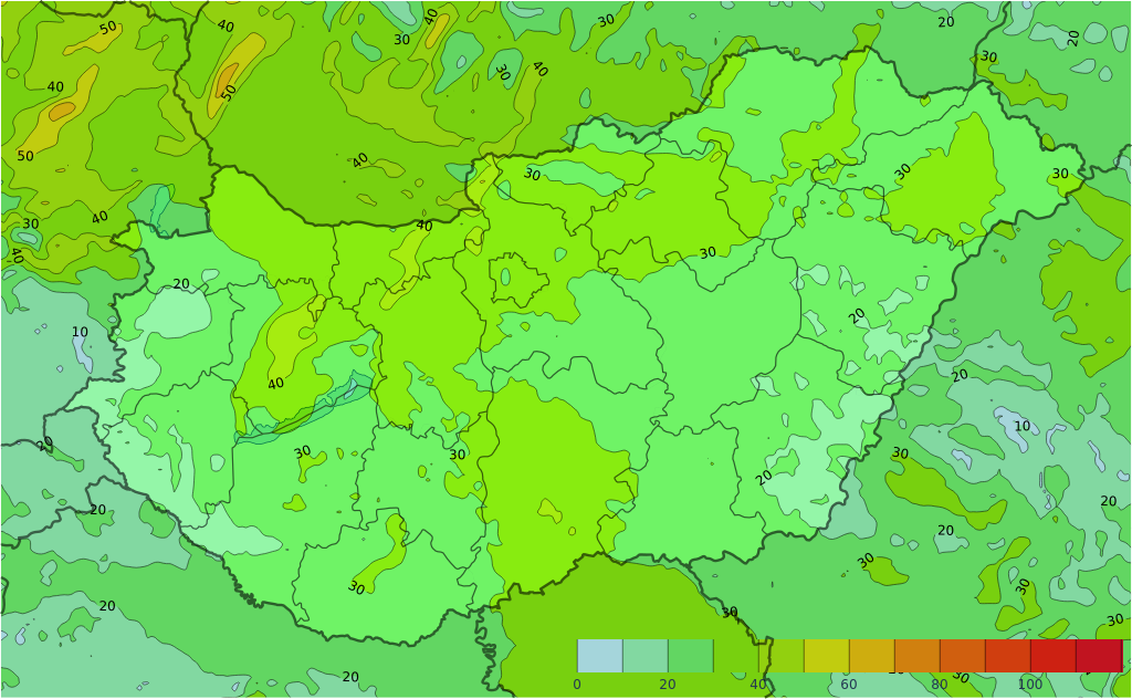- Többfelé várható csapadék: a Dunántúlon eső, zápor valószínű, a Dunától keletre zivatar, felhőszakadás is lehet.