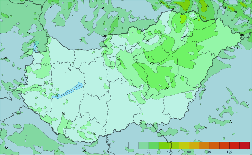 - Keleten szórványosan, nyugaton néhol alakulhat ki zápor, zivatar.