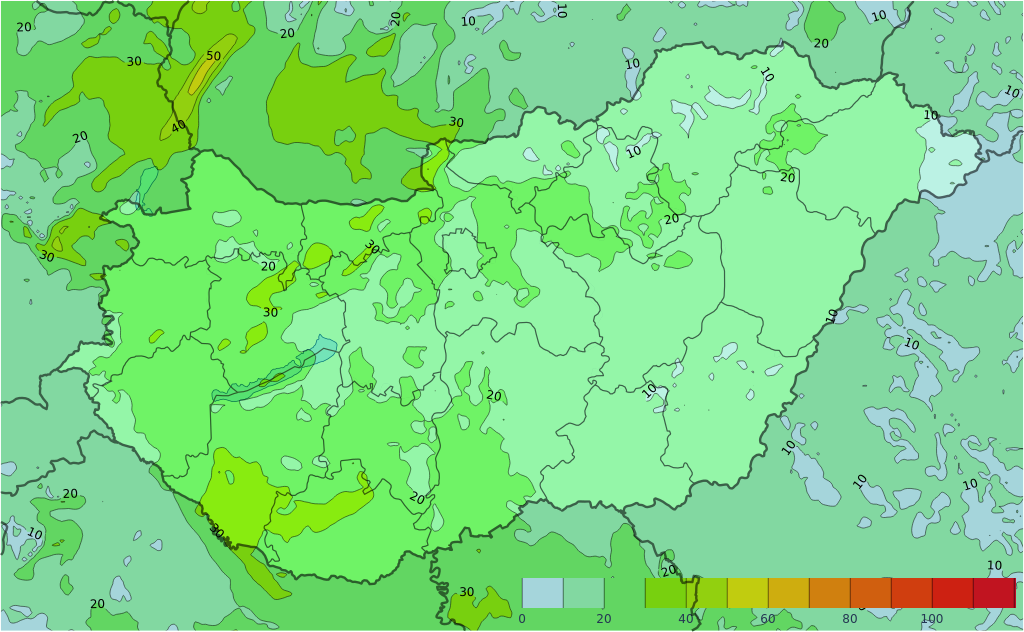 - A legmagasabb nappali hőmérséklet 25, 35 fok között alakul, északnyugaton marad 30 fok alatt.