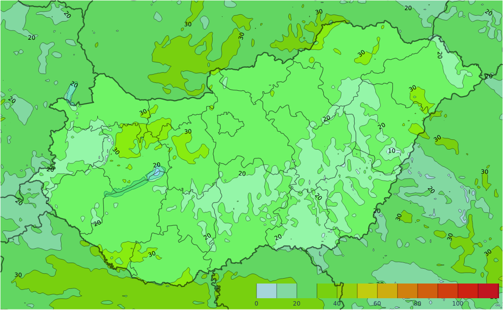 • Helyenként – nagyobb eséllyel északon – alakulhat ki zápor, zivatar.