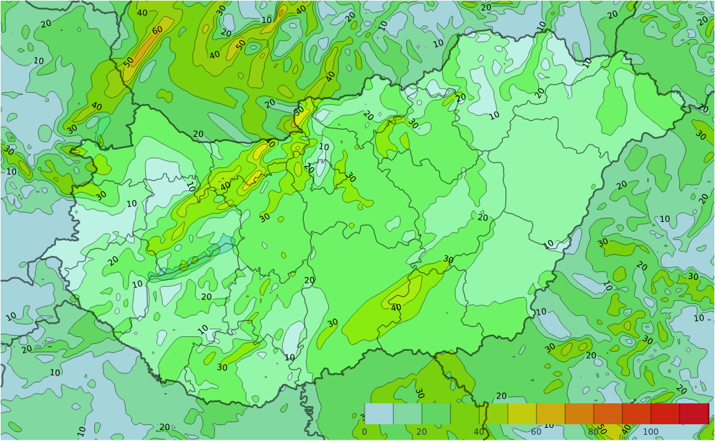 - Főként az északi, északkeleti országrészben fordulhat elő szitálás.