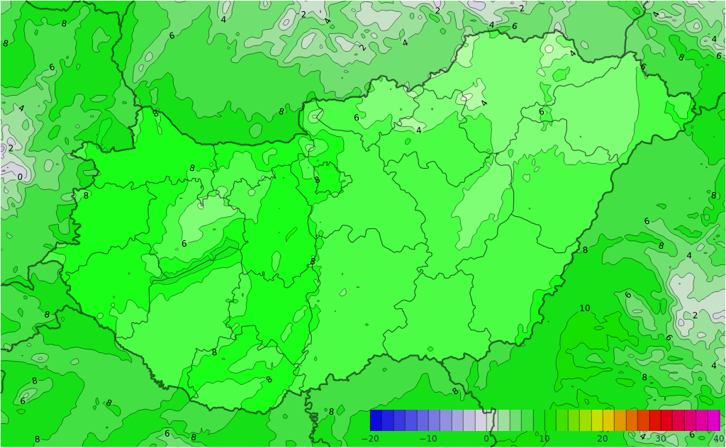 - A legalacsonyabb éjszakai hőmérséklet általában 2 és 7 fok között valószínű, de az északi völgyekben és az Alpokalja szélvédett helyein -2, +1 fok is lehet.