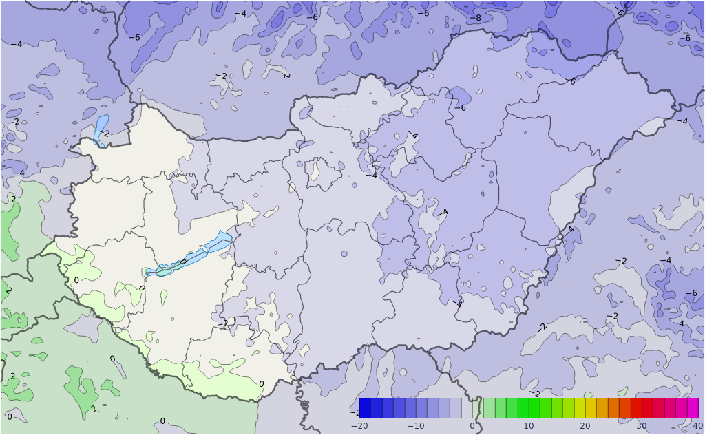 Szerdán többnyire erősen felhős vagy borult lesz az ég, számottevő csapadék nem lesz. A légmozgás mérsékelt marad. A minimum-hőmérséklet általában -12 és -4 fok között valószínű. Kora délután -6, +3 fok várható, délnyugaton a magasabb értékekkel.