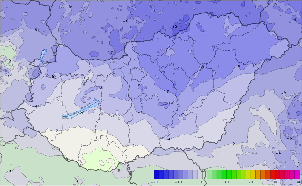 Pénteken a kezdetben nagyrészt derült északkeleti, keleti országrészben is erősen megnövekszik a felhőzet. Nyugat felől egyre több helyen fordulhat elő időszakos hószállingózás, többnyire gyenge havazás. A délnyugati országrészben azonban, ahol a déli óráktól intenzívebb lehet a csapadéktevékenység, nagyobb területen van esély (intenzív) ónos esőre! A déli, délkeleti szél keletire, északkeletire fordul, néhol megélénkül. A legmagasabb nappali hőmérséklet -12 és 0 fok között várható, északkelet felé haladva számíthatunk az alacsonyabb értékekre. Késő este -2, -10 fok lesz.