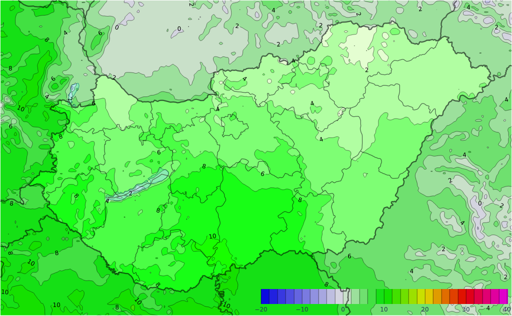 - Helyenként zápor előfordulhat (10-30% eséllyel).
