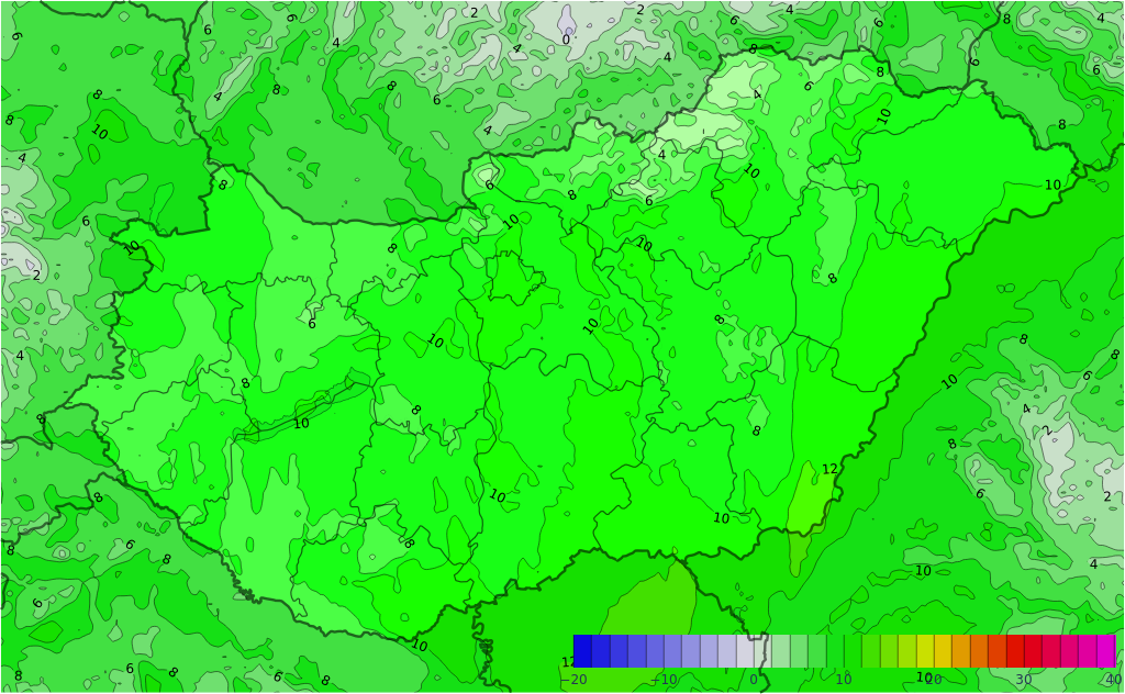 - A legalacsonyabb éjszakai hőmérséklet 4 és 10, a legmagasabb nappali hőmérséklet 12 és 19 fok között valószínű, északkeleten lesz a hűvösebb.