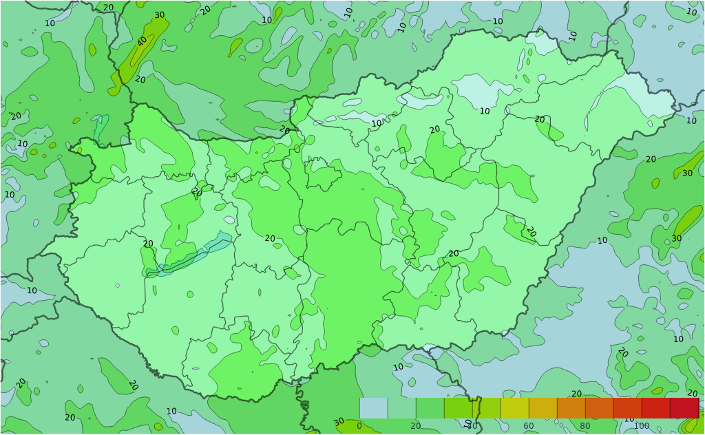 Szerdán átmenetileg csökken a csapadékhajlam és naposabbra fordul az idő. A déli szél továbbra is sokfelé lehet élénk, helyenként erős. A legalacsonyabb éjszakai hőmérséklet 8 és 15, a csúcshőmérséklet 20 és 25 fok között alakul.