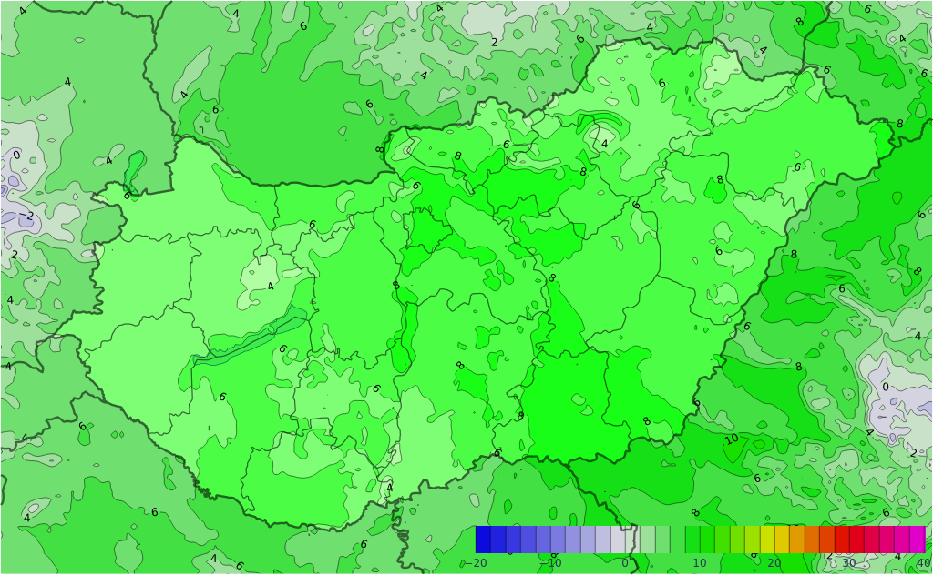 - A legalacsonyabb éjszakai hőmérséklet általában 3 és 8 fok között alakul, de a hidegre érzékeny területeken néhol fagyhat is.