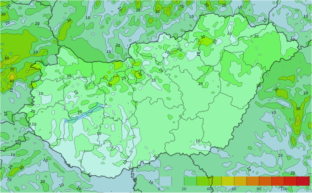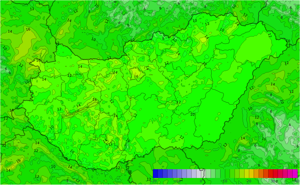 Szombaton jellemzően erősen felhős vagy borult idő valószínű rövidebb felszakadozásokkal, de főként a déli tájakon hosszabb időre is kisüthet a nap. A déli órákig az északkeleti megyékben még előfordulhat kisebb eső, ónos eső, ezt követően késő délutántól délnyugat felől érkezik az újabb csapadékzóna, zömmel esővel, de a nyugati határvidéken néhol ónos eső sem kizárt. A déli, délkeleti szél a Dunántúl egyes részein és a Dél-Alföldön időnként megélénkül. A legmagasabb nappali hőmérséklet általában -1, +6 fok között alakul, de a szelesebb és/vagy naposabb tájakon néhány fokkal melegebb is lehet. Késő este -3, +3 fok valószínű.