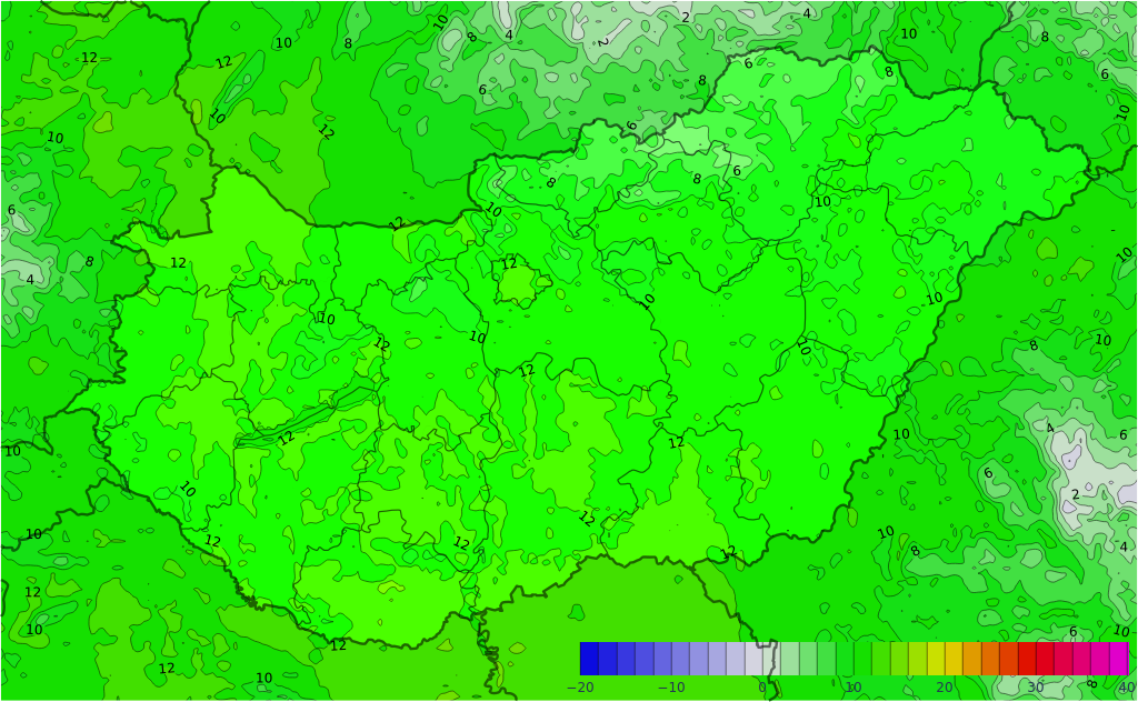 Szombaton jellemzően erősen felhős vagy borult idő valószínű rövidebb felszakadozásokkal, de főként a déli tájakon hosszabb időre is kisüthet a nap. A déli órákig az északkeleti megyékben még előfordulhat kisebb eső, ónos eső, ezt követően késő délutántól délnyugat felől érkezik az újabb csapadékzóna, zömmel esővel, de a nyugati határvidéken néhol ónos eső sem kizárt. A déli, délkeleti szél a Dunántúl egyes részein és a Dél-Alföldön időnként megélénkül. A legmagasabb nappali hőmérséklet általában -1, +6 fok között alakul, de a szelesebb és/vagy naposabb tájakon néhány fokkal melegebb is lehet. Késő este -3, +3 fok valószínű.