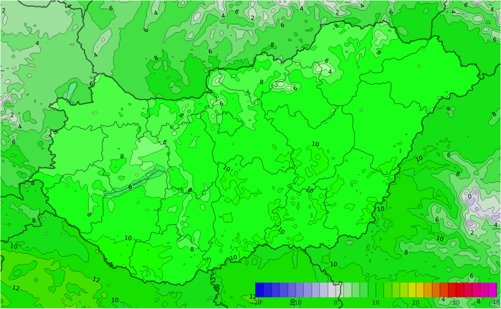Szombaton csökken a felhőzet, a fátyol- és gomolyfelhők mellett általában sok napsütés várható. Az ország keleti felén néhol lehet zápor. A nappali órákban időnként élénk lökések kísérik a változó irányú szelet. A hajnali hőmérséklet -5 és +5 fok között alakul, a Dunától keletre hűlhet le nagyobb területen 0 fok alá a levegő. Délután 10, 16 fokra számíthatunk.