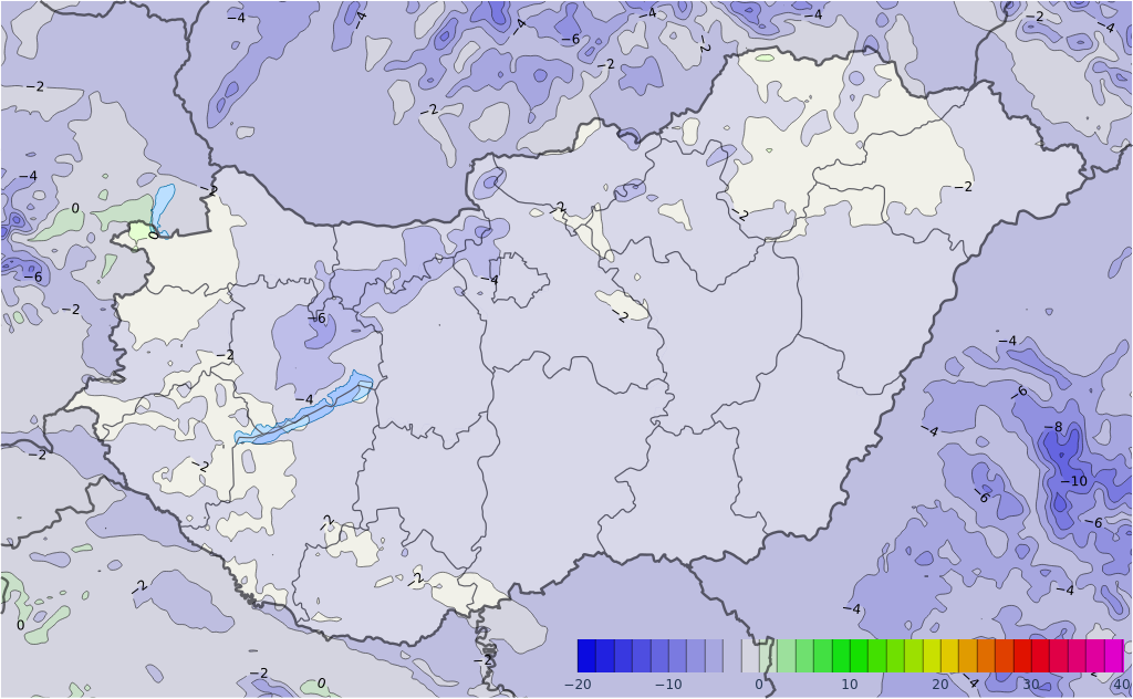 Hétfő délelőtt a kevésbé felhős északi tájakon is megvastagszik a felhőzet, országszerte borult lesz az ég. Dél felől egyre többfelé várható havazás. Az ország nagy részén képződik mérhető hóréteg, vastag hótakaró elsősorban a déli országrészben alakul ki. A Tiszántúlon – a keleti, délkeleti határ felé haladva növekvő eséllyel vegyes csapadék, valamint ónos eső, eső is valószínű. Az északi, északkeleti szél helyenként megélénkül. A legmagasabb nappali hőmérséklet -3 és +2 fok között várható. Késő este 0, -4 fok valószínű.