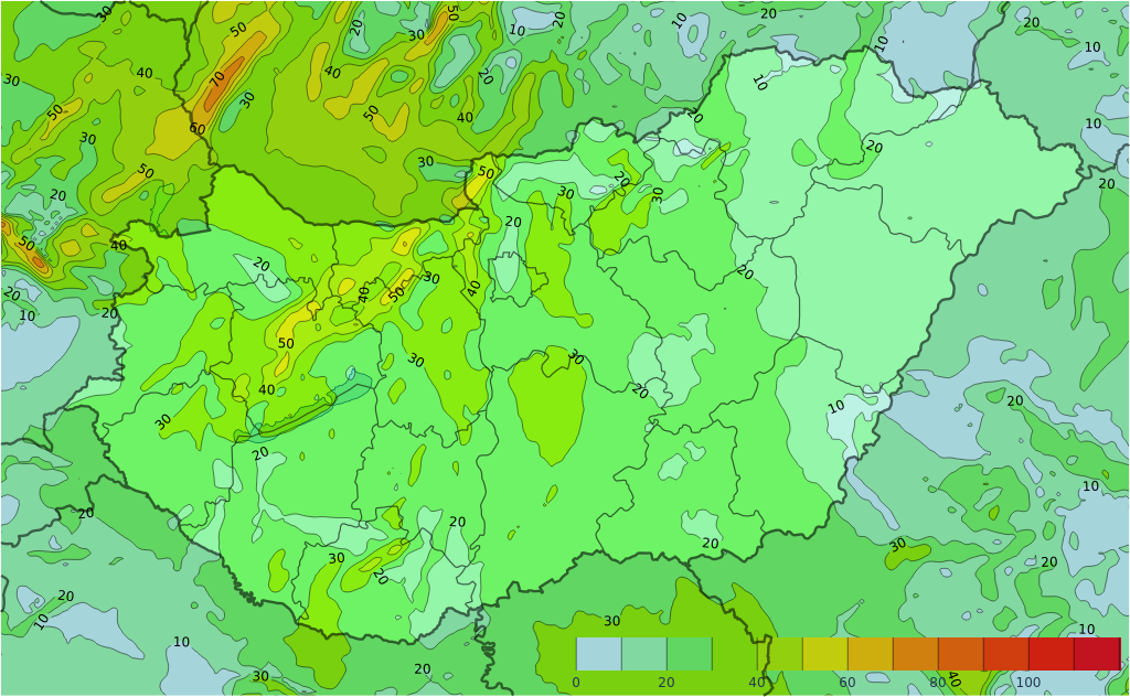 - Északkeleten mérhetik az alacsonyabb, a délnyugati tájakon a magasabb értékeket.