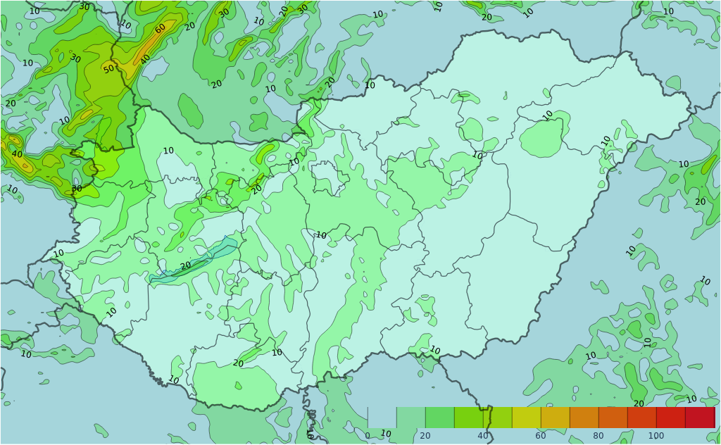 - Sokfelé várható eső, zápor, főként keleten zivatar, helyenként jelentős mennyiségű csapadék hullhat.