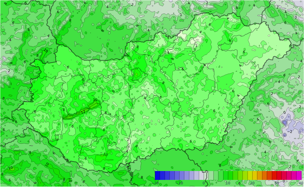 Szerdán nyugat felől országszerte beborul az ég. Északkeleten, valamint az északnyugati határvidéken éjszaka köd is képződhet. Csapadékzóna érkezik, illetve képződik az ország fölött, melyből főleg a nap második felében valószínű csapadék. Többnyire eső várható, de az Északi-középhegység térségében estig még kisebb vegyes halmazállapotú (akár ónos) csapadék is előfordulhat, melyet estére arrafelé is egyre inkább eső vált fel. A délies, majd a keleties szelet néhol élénk, erős lökések kísérhetik. A minimum-hőmérséklet -3, +3 fok között valószínű, de a szélvédett, kevésbé felhős északi völgyekben néhány fokkal alacsonyabb értékek is előfordulhatnak. A maximum általában 4 és 10 fok között alakul, de az Északi-középhegység térségében fagypont körüli, kevéssel afölötti csúcsértékek valószínűek.